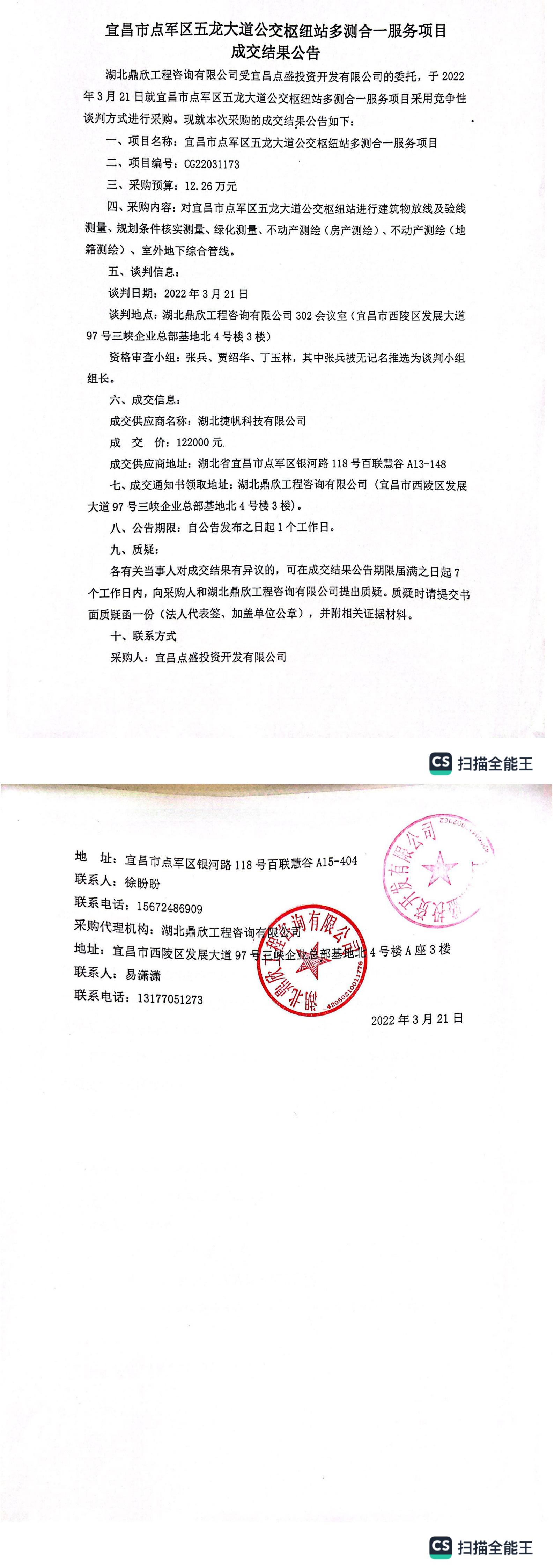 宜昌市點(diǎn)軍區(qū)五龍大道公交樞紐站多測(cè)合一服務(wù)項(xiàng)目成交結(jié)果公告