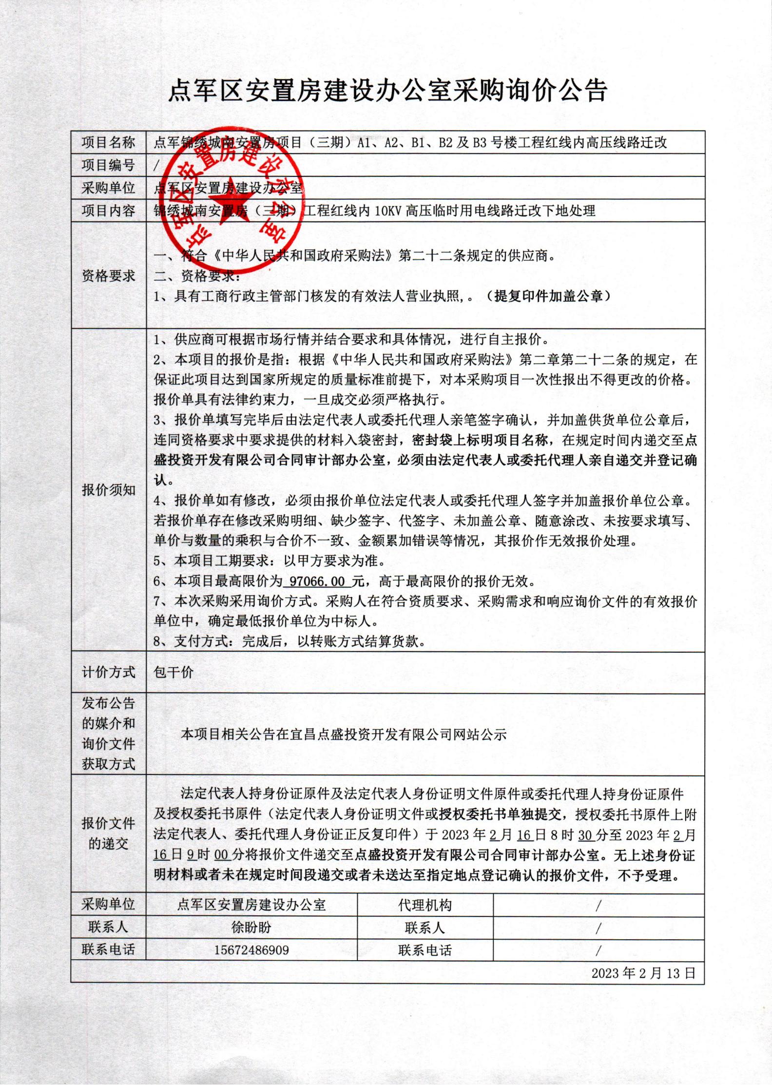錦繡城南三期(EPC+F)工程紅線內(nèi)高壓遷改詢價公告