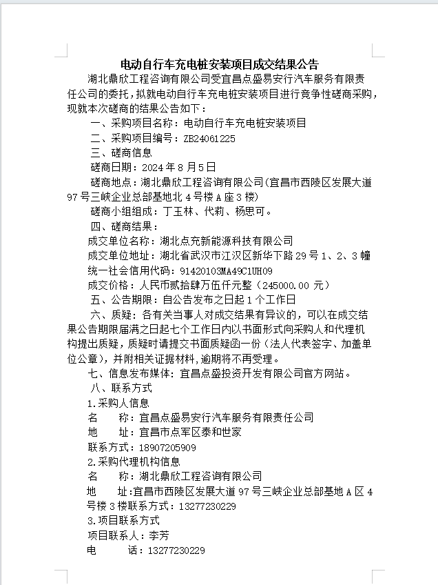 電動自行車充電樁安裝項(xiàng)目成交結(jié)果公告