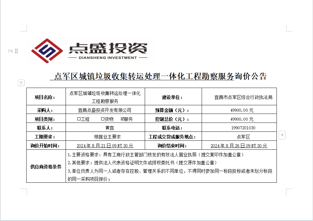 點(diǎn)軍區(qū)城鎮(zhèn)垃圾收集轉(zhuǎn)運(yùn)處理一體化工程勘察服務(wù)詢價公告