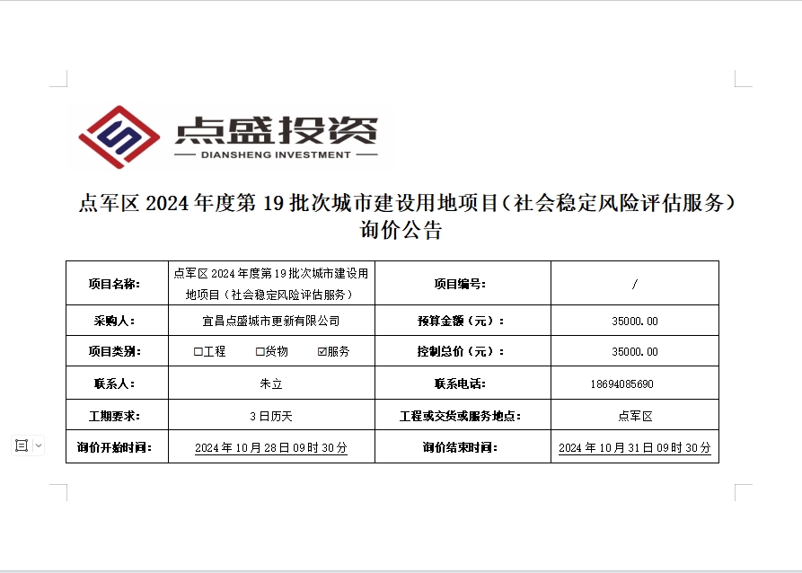 點(diǎn)軍區(qū)2024年度第19批次城市建設(shè)用地項(xiàng)目(社會穩(wěn)定風(fēng)險評估服務(wù))詢價公告