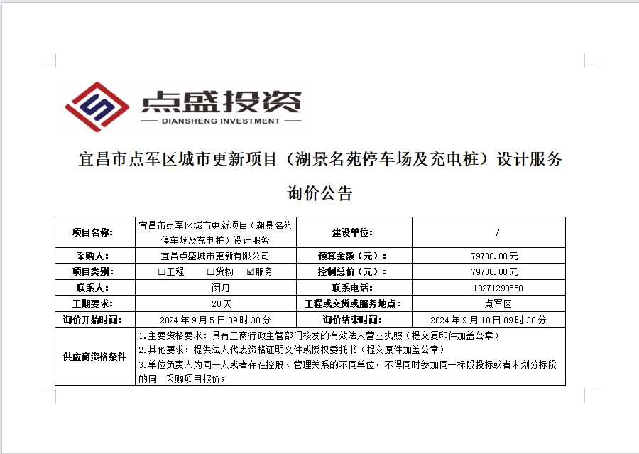 宜昌市點(diǎn)軍區(qū)城市更新項(xiàng)目(湖景名苑停車場及充電樁)設(shè)計(jì)服務(wù)詢價(jià)公告