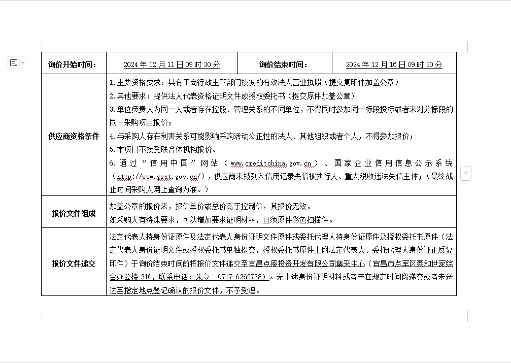 詢價(jià)公告