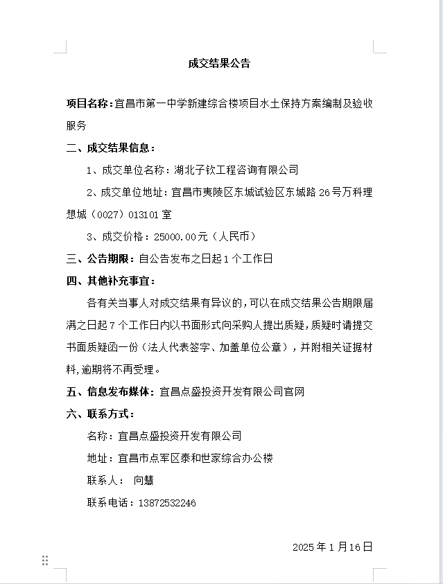 宜昌市第一中學(xué)新建綜合樓項目水土保持方案編制及驗收服務(wù)成交公告