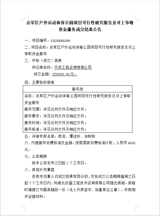 點軍區(qū)戶外運動體育公園項目可行性研究報告及對上爭取資金服務成交公告