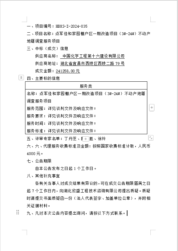 點軍佳和家園棚戶區(qū)一期改造項目(3#-24#)不動產(chǎn)地籍調查服務項目成交公告